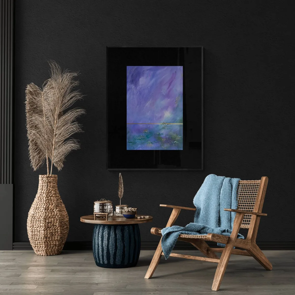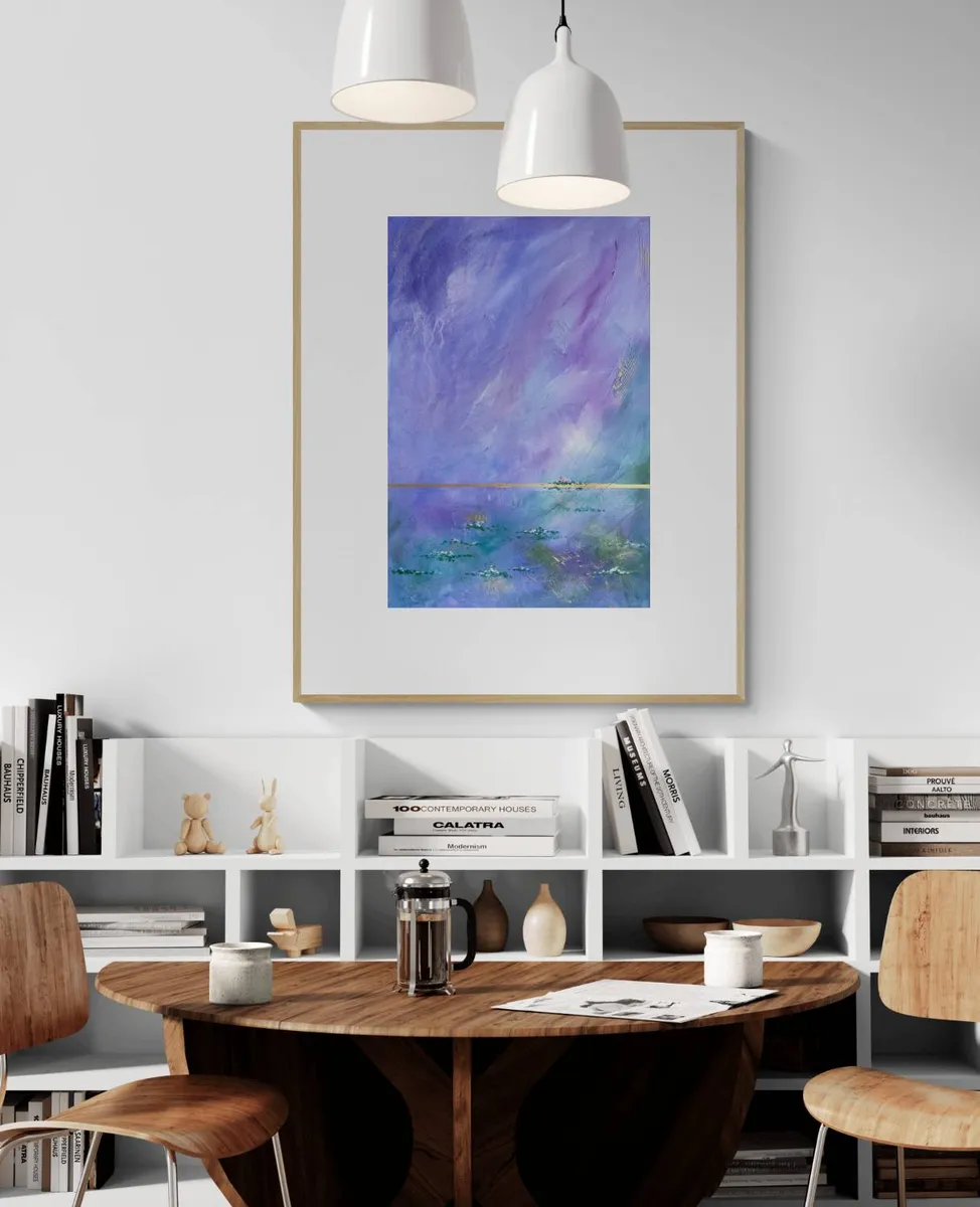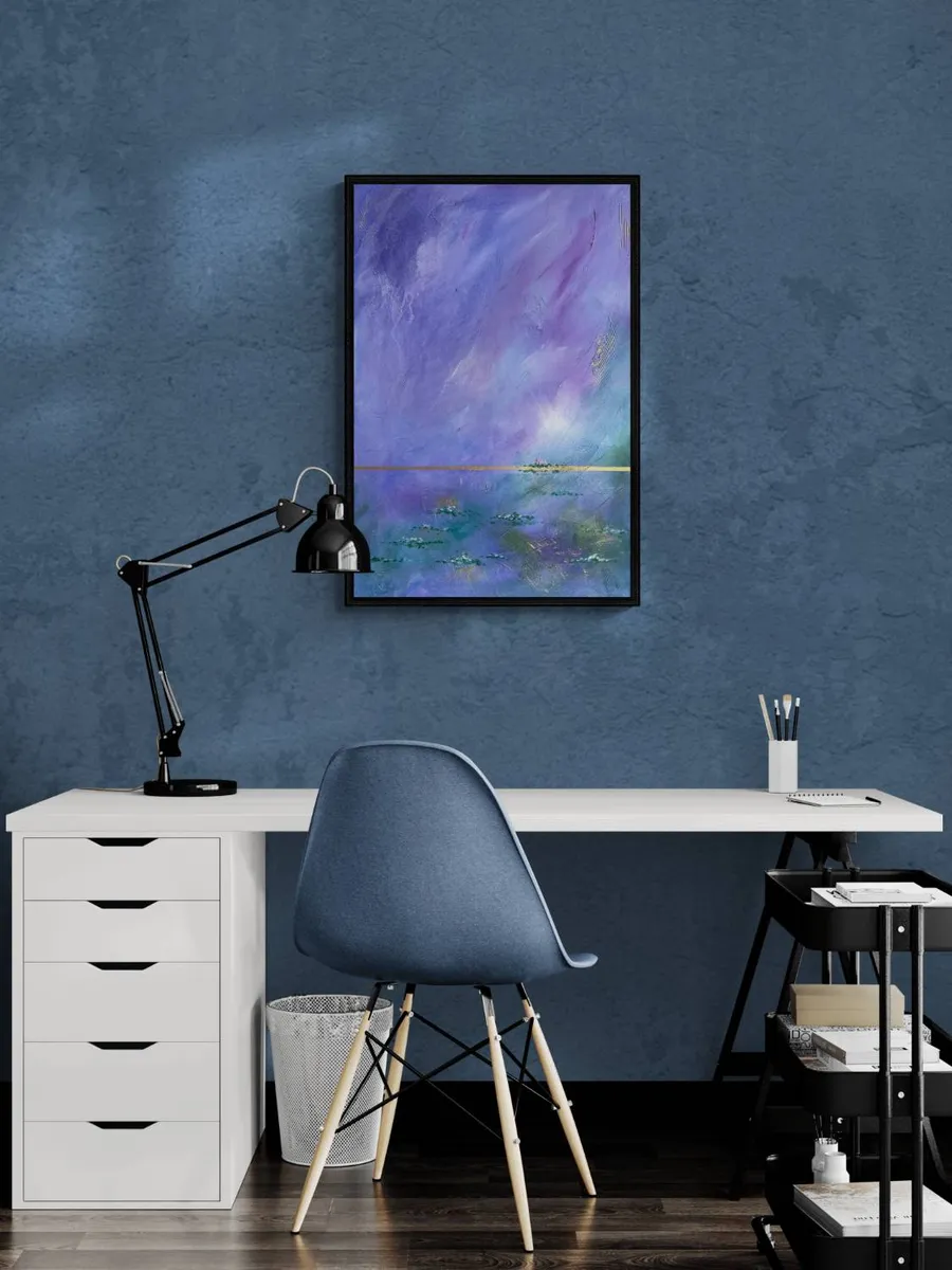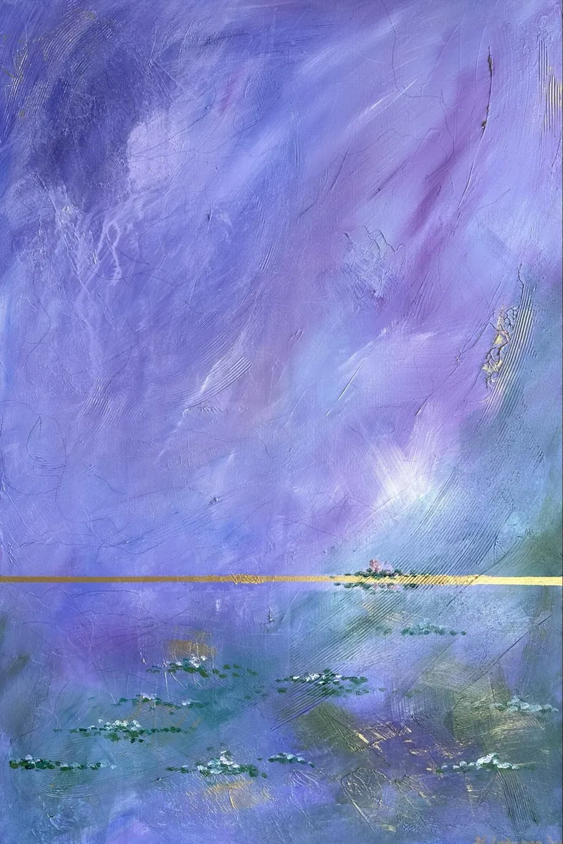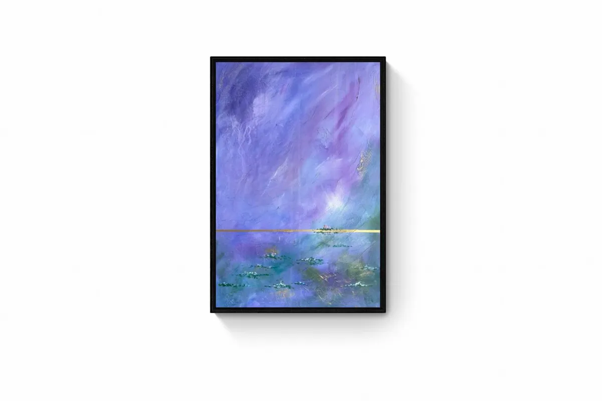 “Tawag ng Lawa” or “Call of the Lake” is an abstract acrylic art painting that captures the tranquil essence of a serene lakeside. In this piece, the artist skillfully portrays a calm lake adorned with floating water lilies, their flowers blooming vibrantly. The sky above is painted in ethereal shades of purple and lilac, which seamlessly blend into the blues and greens of the lake below. This harmonious fusion of colors not only enhances the painting’s visual depth but also evokes a profound sense of calmness and serenity. The artwork invites viewers to experience the peacefulness of nature and the soothing call of the lake.