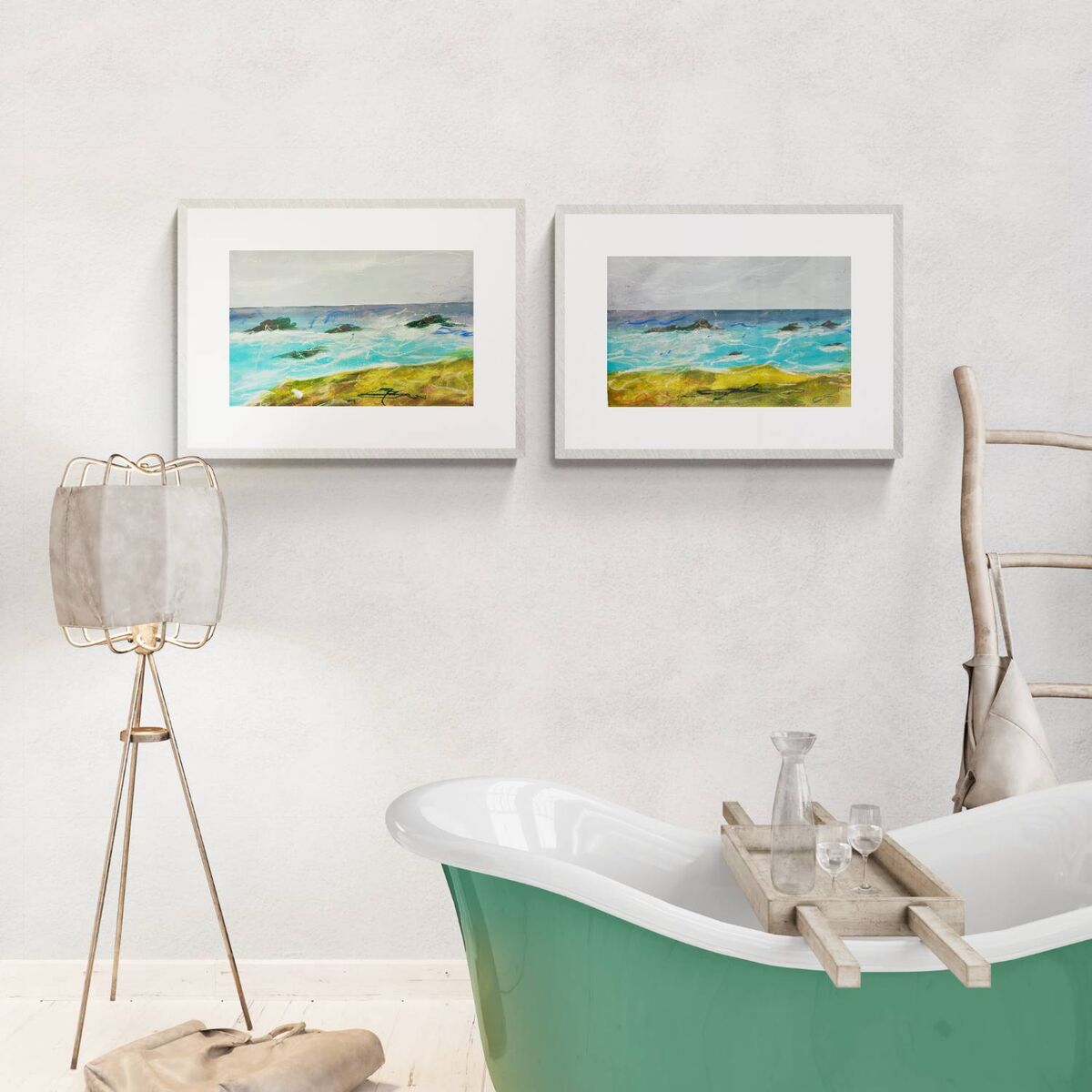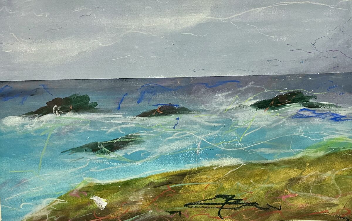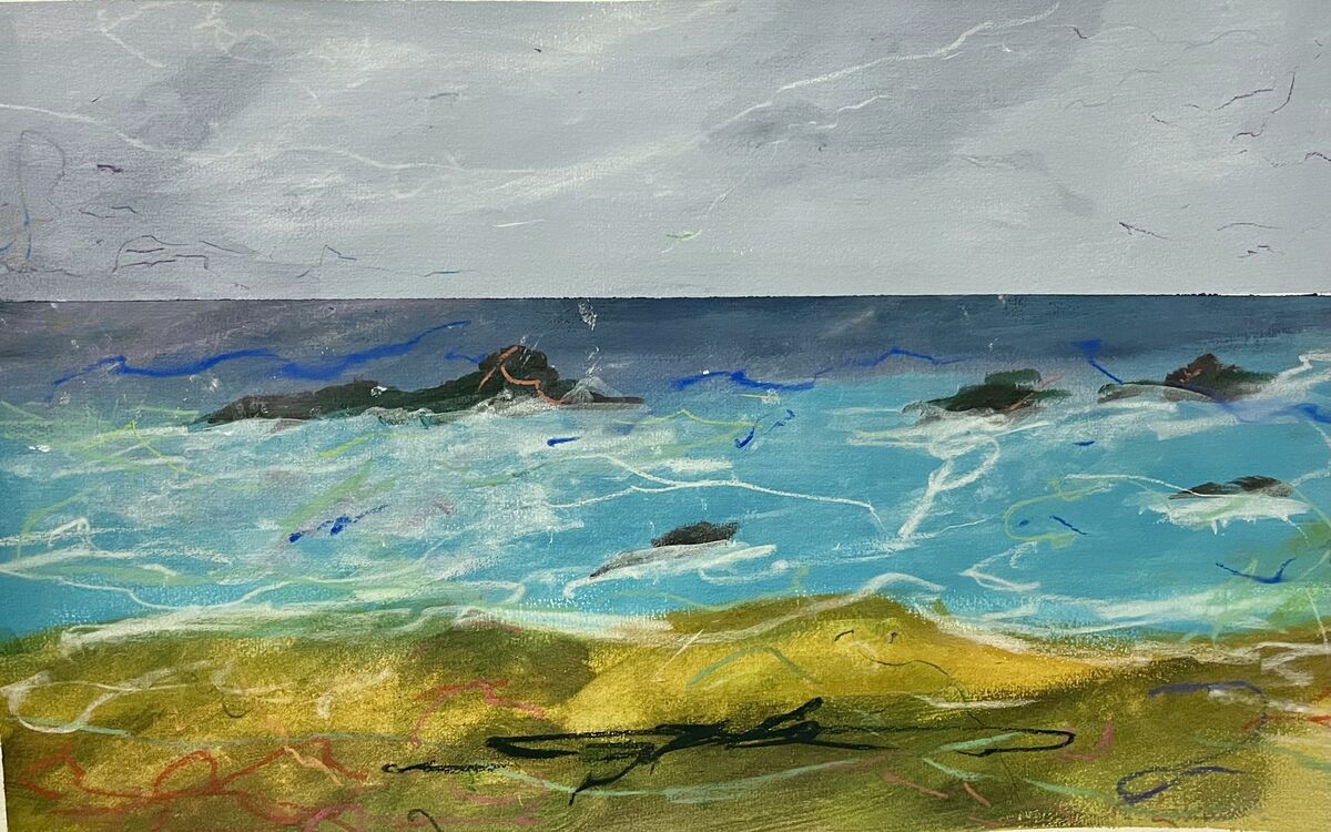 "Bermagui" is a captivating acrylic painting on paper that transports the viewer to the rugged coastline of Bermagui, Australia. The artist has expertly used a combination of blue and yellow ochre colors to capture the essence of the cold, turbulent sea. The painting depicts crashing waves against the rocks, conveying a sense of dynamic energy and power. The use of muted colors in the painting adds to the coldness and stillness of the place, creating a mood that is both contemplative and exhilarating. The title of the painting, "Bermagui," serves as a reminder of the awe-inspiring beauty of the natural world. The artist has skillfully captured the rugged, wild beauty of the Australian coast, creating a work that is both powerful and evocative.