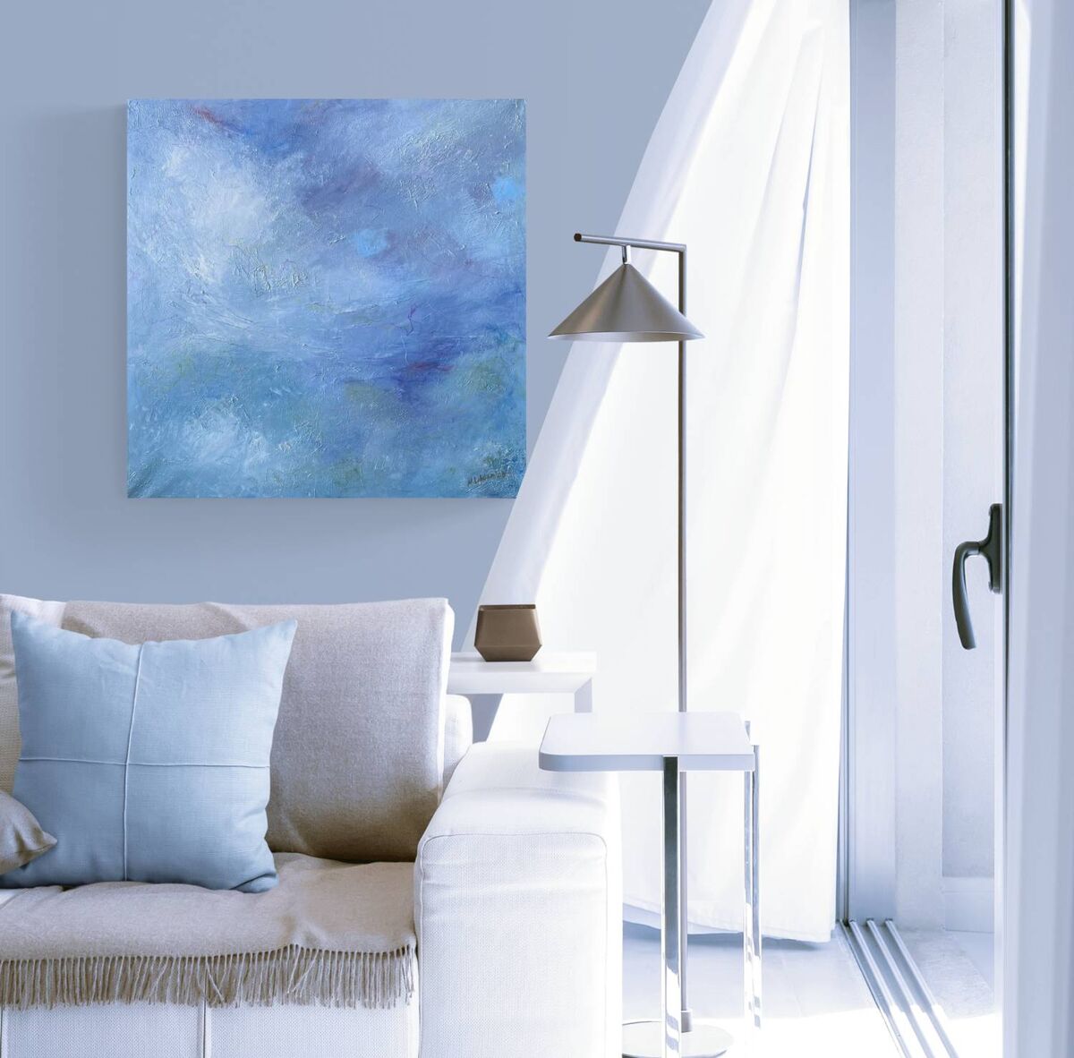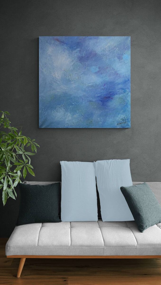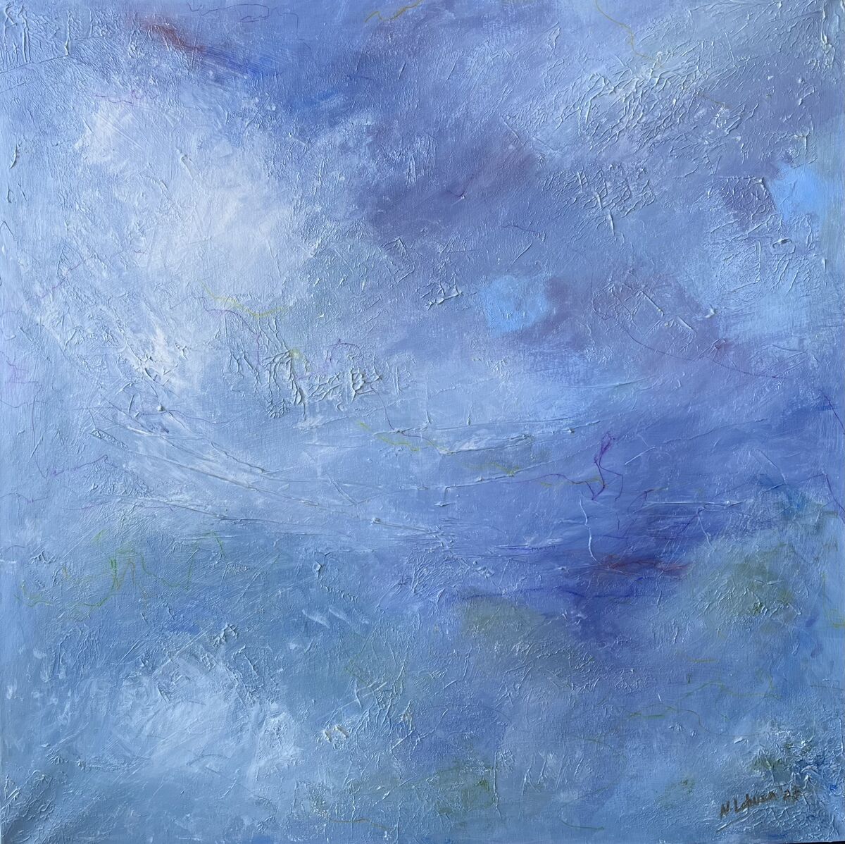 1 / 2 "Laguna de Bay" is a striking acrylic texture abstract painting that captures the essence of Laguna Lake as viewed from the side of Taguig. The painting features an explosion of blues and whites, evoking a sense of vastness and stillness that is characteristic of the lake. The use of texture in the painting creates a sense of muted chaos, adding depth and dimension to the composition. The artist has skillfully captured the essence of the lake, with its still waters and distant horizons, creating a sense of calm and serenity in the viewer. The title of the painting, "Laguna de Bay," serves as a reminder of the natural beauty of the Philippines and the important role that the lake plays in the ecology and culture of the region. "Laguna de Bay" is a testament to the artist's mastery of color and texture to convey a mood and emotion in their work, creating a stunning tribute to the vastness and stillness of Laguna Lake.