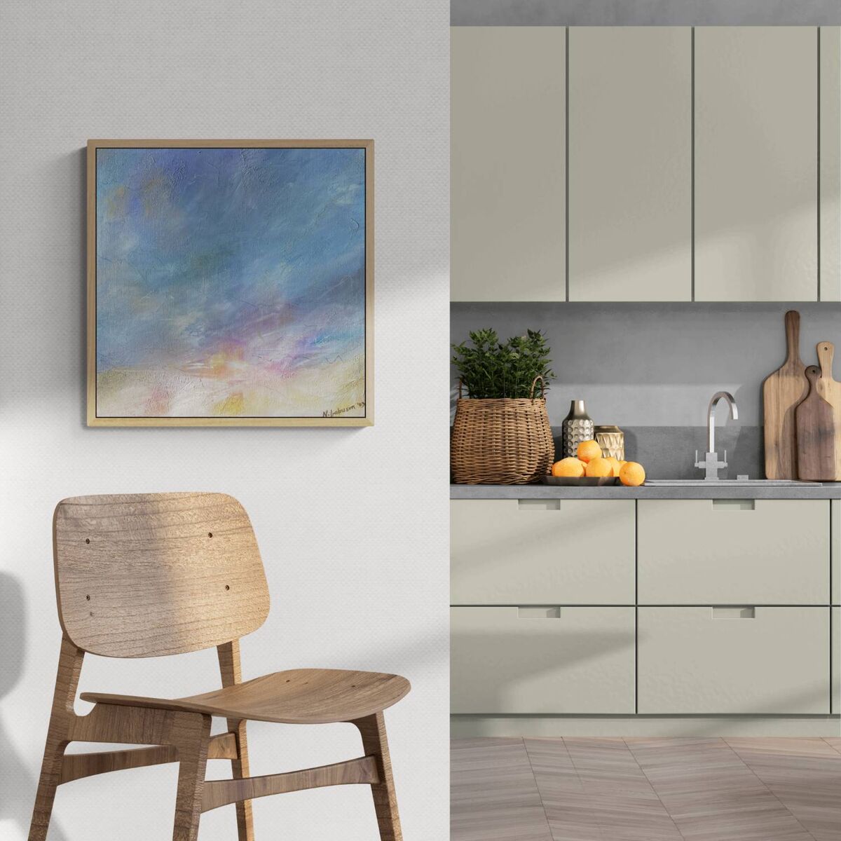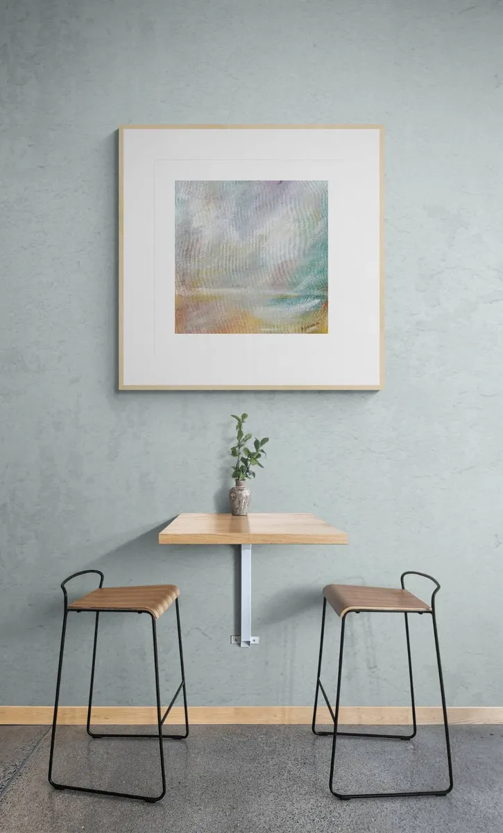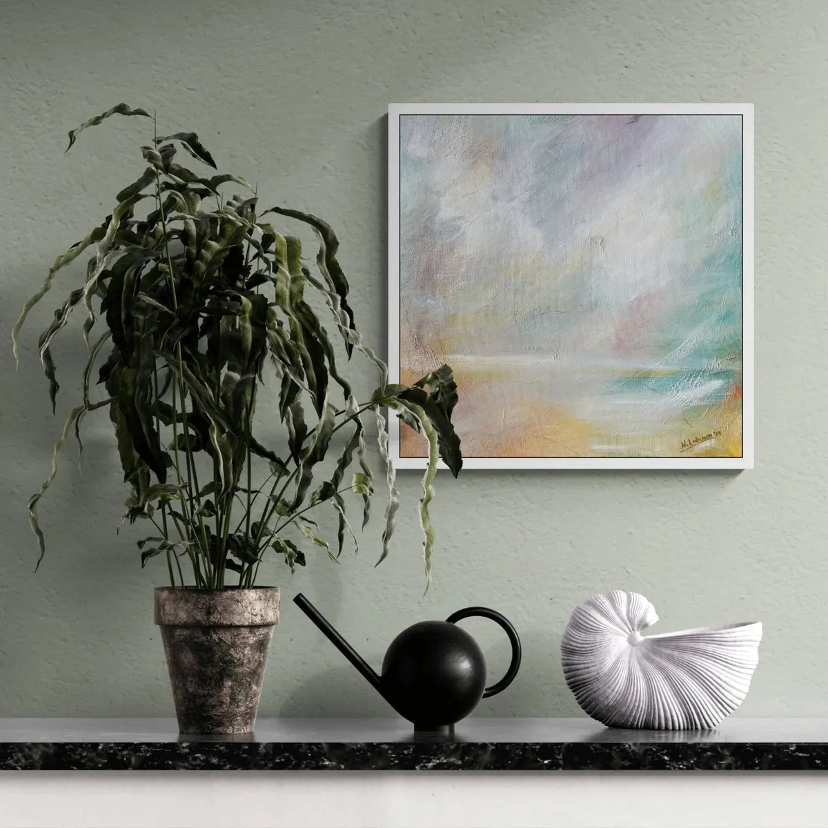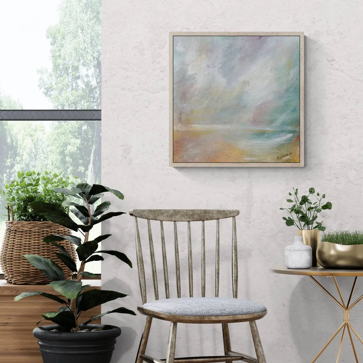 "Storm’s Edge" stands as a vivid embodiment of the delicate moment just before nature asserts its formidable power. With a palette rich in blue, yellow ocher, ethereal whisps of viridian, and assertive touches of crimson, the artist intricately weaves a tale of anticipation and profound respect for the natural world. The textured acrylic strokes provide depth and dimension, creating an atmospheric tension that is palpable. It's a work where tranquility and turmoil coalesce, where each color and brushstroke invites viewers on a sensory journey, echoing the romantic fervor of bygone eras while firmly rooted in a contemporary narrative. This piece was part of