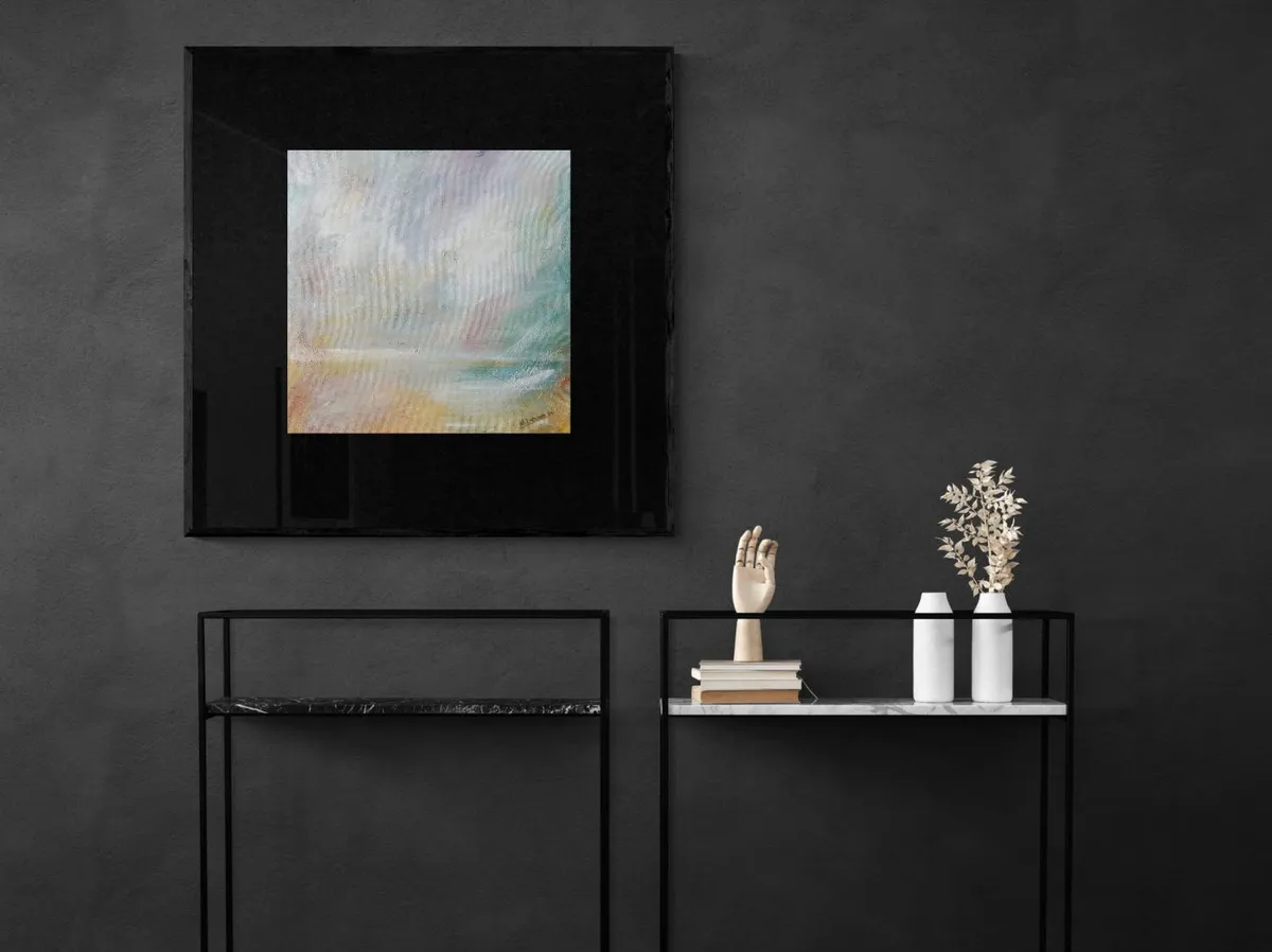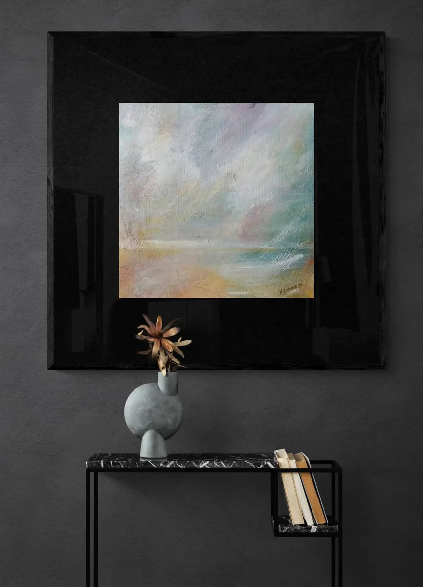 "Finding the Calm" is a textured acrylic masterpiece, encapsulating the tumultuous dance of an abstract storm. Within the chaotic tempest, swirls of bold hues and dynamic strokes rage with emotion. However, grounding the scene is a solitary boat, serenely navigating the canvas at the base. It appears undisturbed, portraying a juxtaposition of turbulence above and tranquility below. This delicate balance serves as a powerful metaphor for finding peace amidst life's most turbulent times. The artist invites viewers to not only witness the storm but to also embark on a journey of inner serenity, reminding us that even in the wildest tempests, there exists a calm to be discovered.
